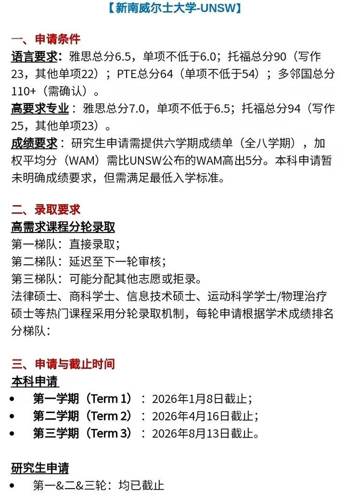 准备在2025年11月或2026年2月前往澳洲八大名校留学的同学们注意啦!随着2025年申请季进入尾声,澳洲八大院校录取分数要求有了新变化,特别是商科、工程、医学等热门专业,分数门槛有明显调整。