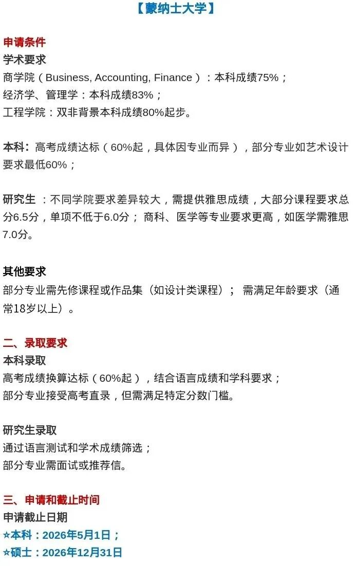 ⭕学校概况:位于墨尔本,以跨学科创新和产学研结合著称,对中国高考成绩认可度高,升学路径灵活。