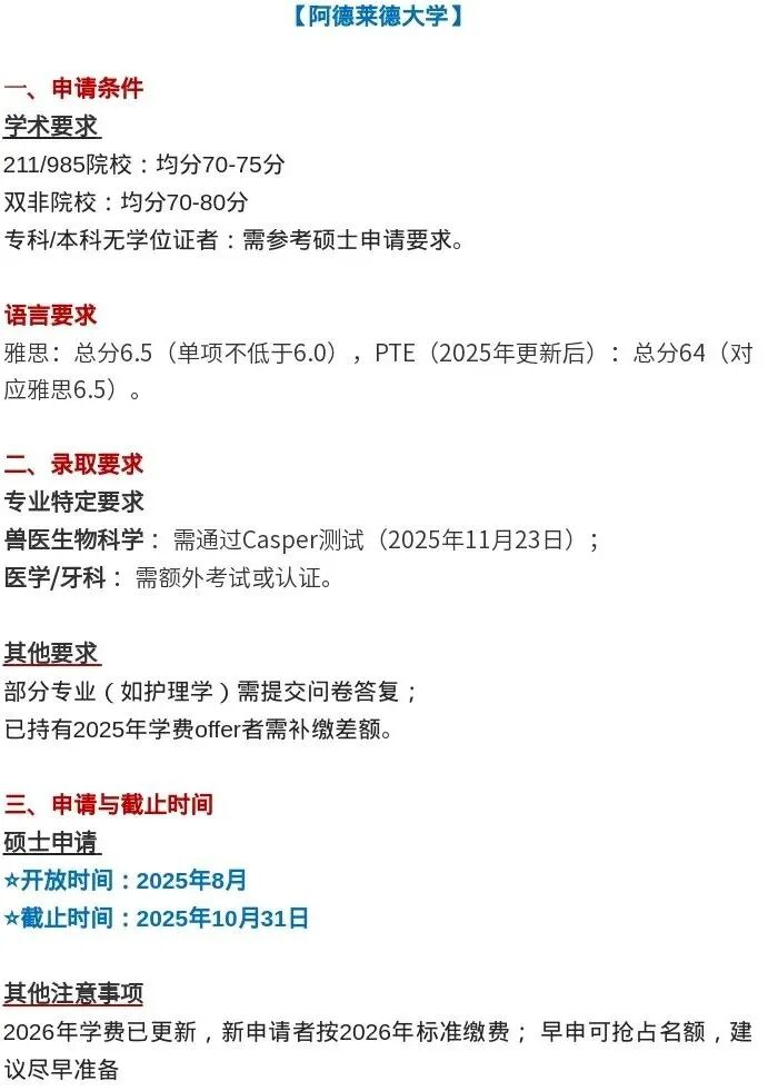 ⭕学校概况:位于阿德莱德,在医学、农业、葡萄酒酿造等领域历史悠久、成果卓越,培养多位诺贝尔奖得主。